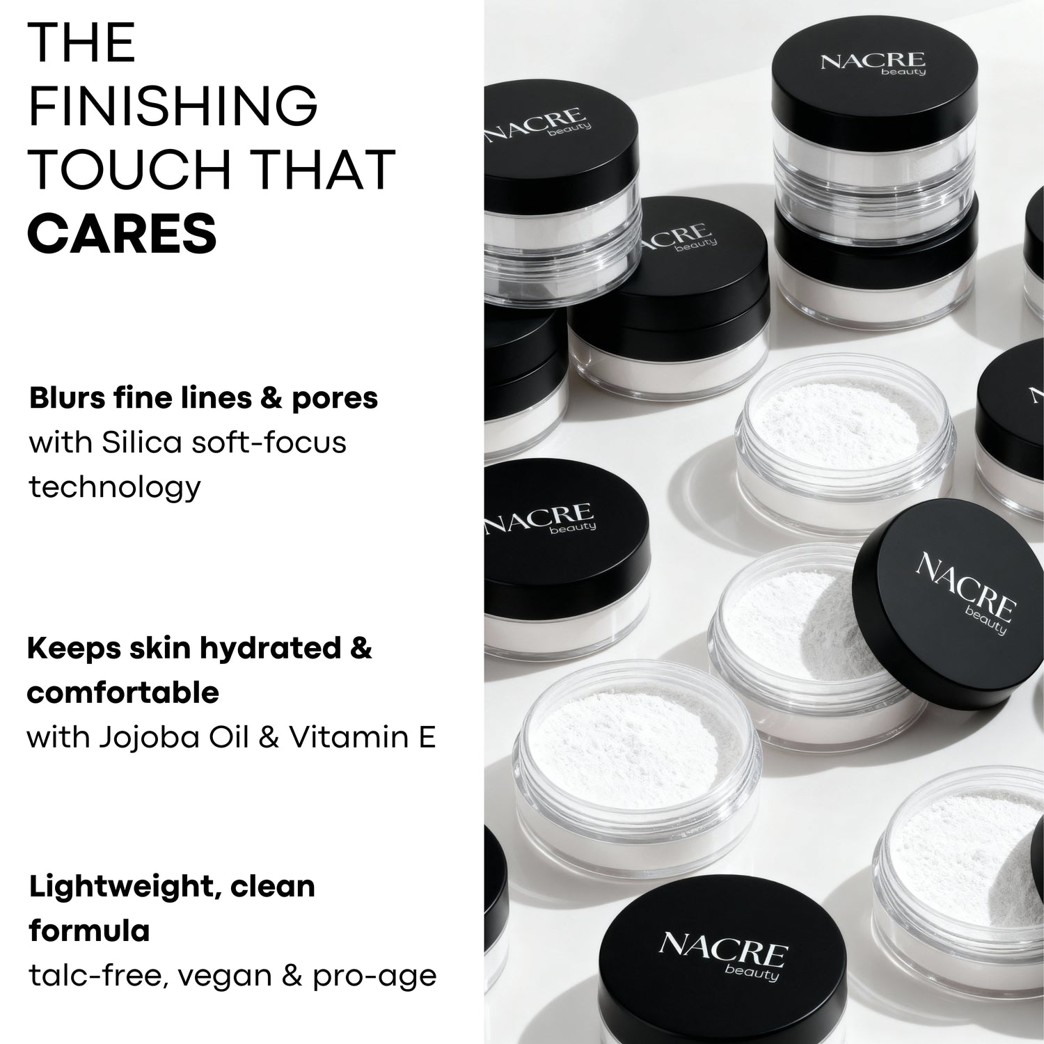 Lightweight yet powerful, this powder sets makeup flawlessly without caking or drying. A clean, pro-age formula that keeps skin smooth, soft, and naturally radiant all day.